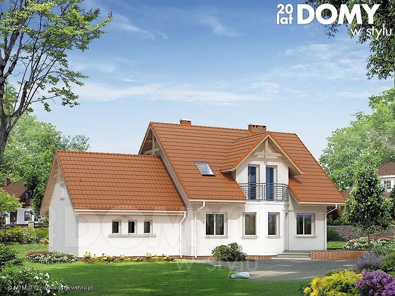 Характеристика проекта Pliszka 4. Проект энергосберегающего дома с мансардой и гаражом на два автомобиля. Он обеспечивает удобство проживания в нем семьи из 4 - 5 человек. В доме есть четыре уютные спальни, две ванные комнаты, гардеробная, котельная, уютная гостиная со столовой в эркере и дополнительное помещение над гаражом, которое можно использовать в качестве кабинета или бильярдной. Компактное здание с кровлей традиционной формы, дополняет эркер в гостиной и балкон на мансардном этаже. Это энергосберегающий проект, который сконструирован таким образом, чтобы свести к минимуму потери энергии и тем самым сделать его более экономичным в обслуживании. Выбранный дизайн также доступен в зеркальном отображении.