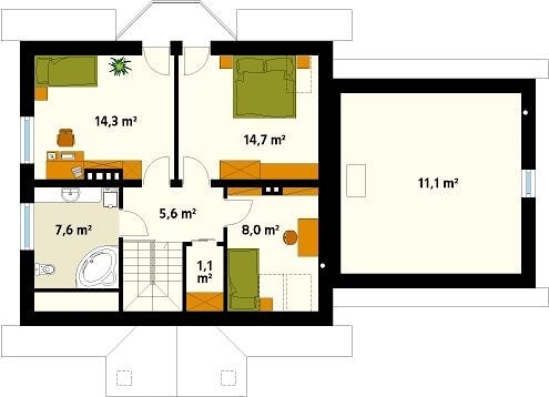 Характеристика проекта Śnieżynka. Небольшой одноэтажный дом с мансардой, удобный для семьи из 4 человек. Дом спроектирован с 3-мя спальнями, 2-мя ванными комнатами, открытой кухней, большой гардеробной. Практичным решением является крытая терраса. ...